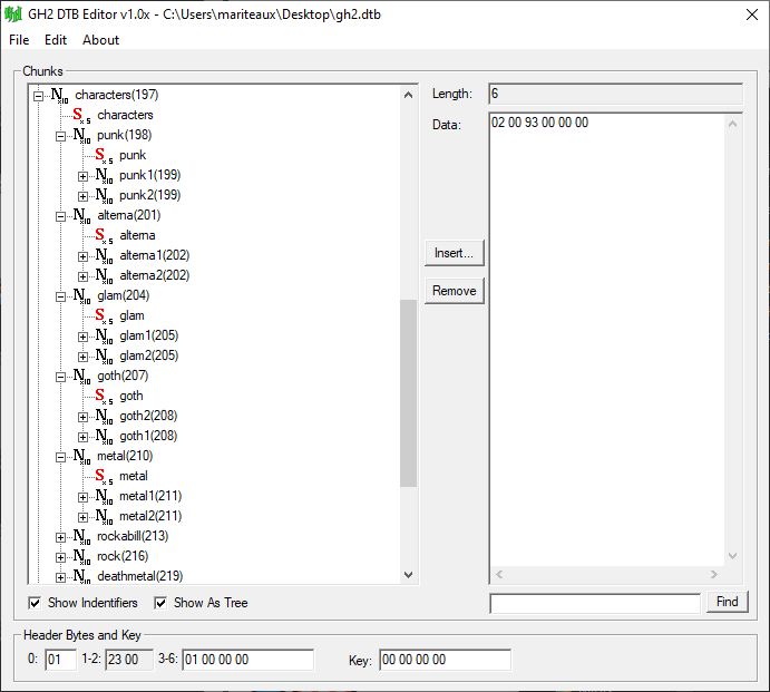 Data Array is stored in one of two file types, either DTA, which is the plain text of the script, and DTB, which is a tokenized (or encrypted) form of it, and what actually shipped on-disc with the game. Harmonix jokingly said in their very highly recommended "Data-Driven Programming Made Easy" GDC panel from 2005 that this was so players didn't mail them their cheat codes. Of course, if you're gonna do any serious Data Array hacking, you'll want to use dtab to convert them to DTA.