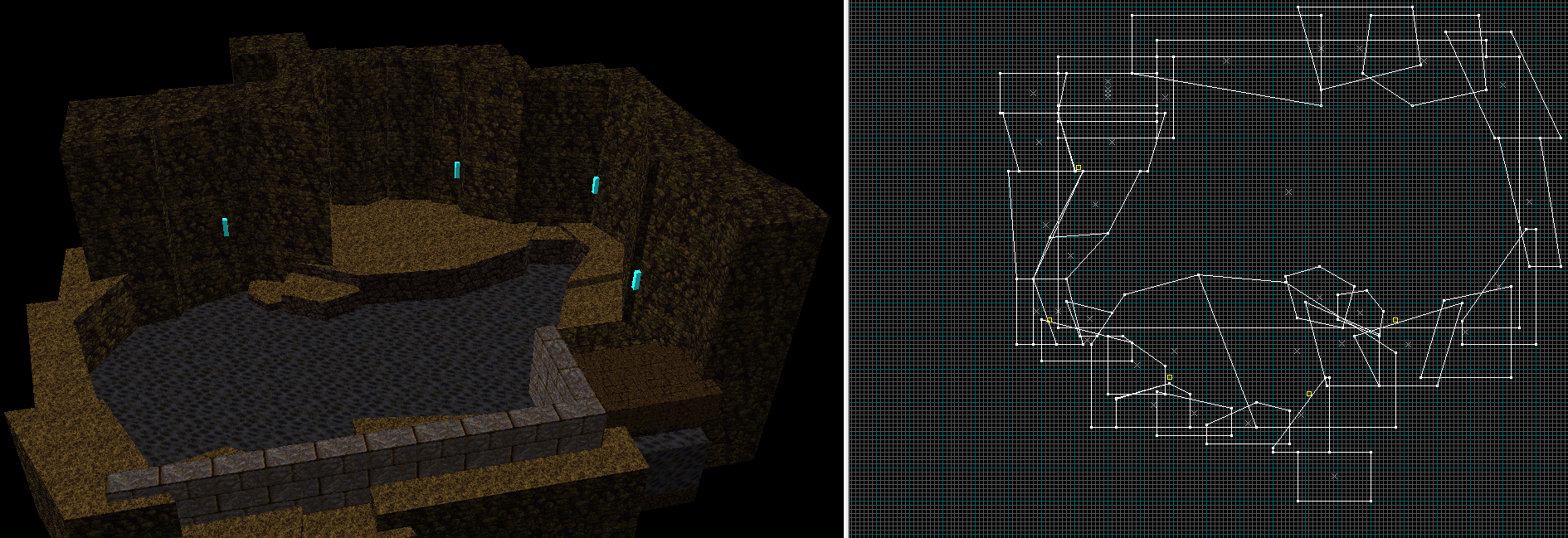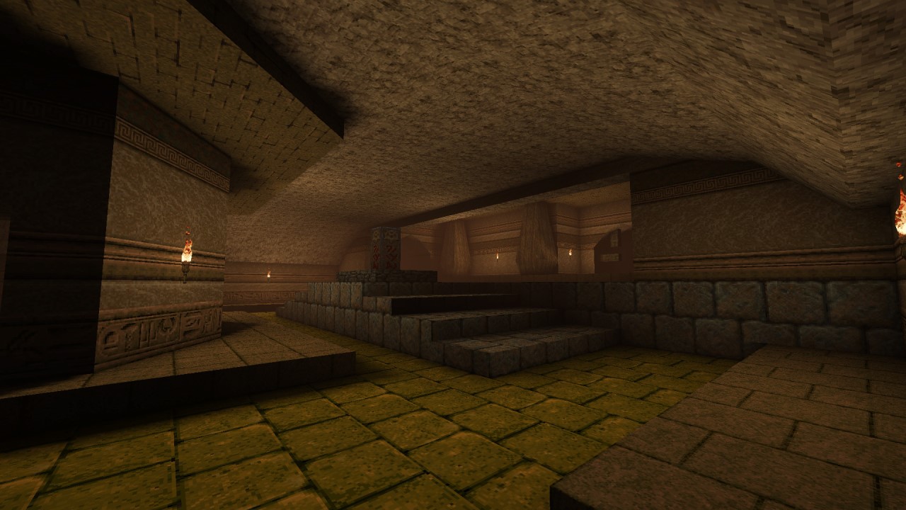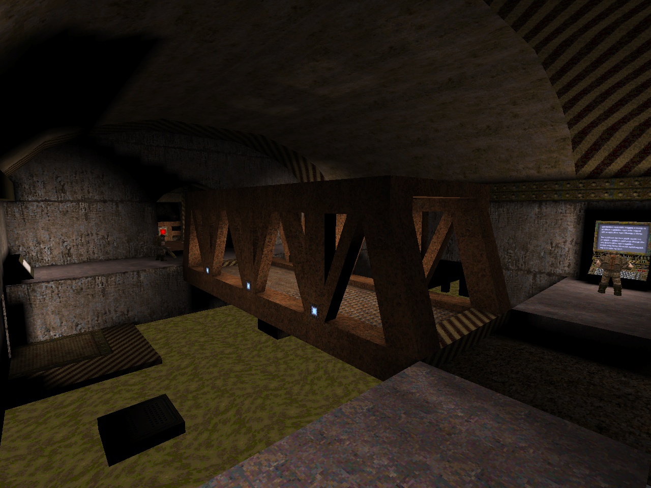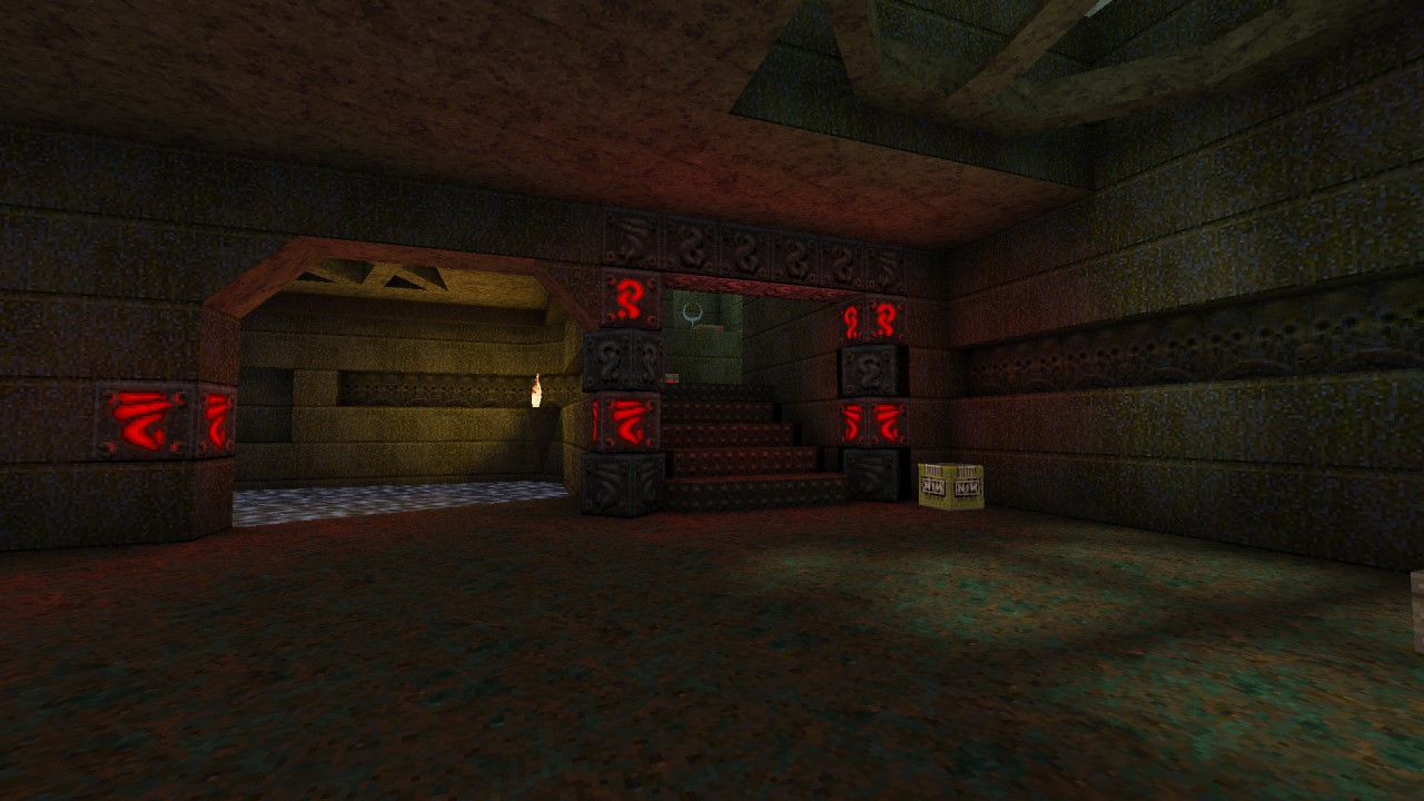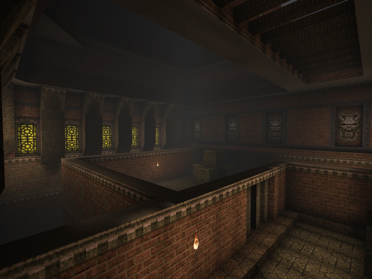 ![]() Now, Quake actually wasn't my first brush with a brush-based engine; that was the Source engine. (I actually still have my first map for that too, amazingly— This was pretty much just the default "J.A.C.K. box" base they give you when you start a new level with some textures picked out by me, and then I added some flame boxes, a light, and a rocket launcher. Just fooling around. "Crypt" (proto-"Temple")