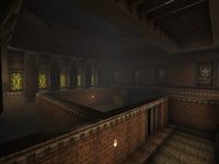 I went over this one in the postmortem for "Arrogant Erratum" as the map concept carried over there, but here's a few more shots of it. I do have a fondness for the warm color palette, but the brushwork was unworkable thanks to Worldcraft's preview window having the worst FOV and me misjudging all the distances. Still, lovely that more of it survives than initially thought.
