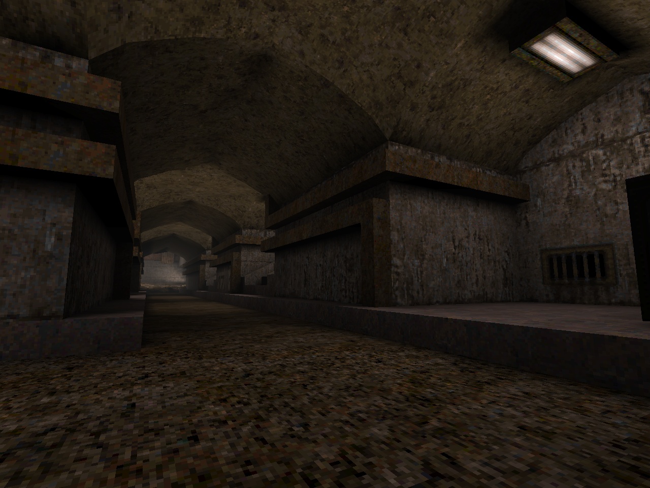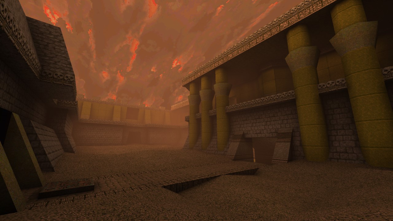 This was the first level I built from scratch. Here's where I started playing with monsters, some neat, recessed lighting and shadows, and actually trying to make these brush things look like something. Trying being the operative keyword. If you're wondering why the lighting looks so bland, I wasn't actually using a source port yet! I just set up J.A.C.K. with Steam's copy of GLQuake, which was a rushed, buggy port of Quake id released after John Carmack's bad experience writing vQuake for Rendition's Vérité chipset. He was so steamed, he forgot to make overbright lighting work. (In short, lightmaps in Quake can max out at 200% brightness—GLQuake will only render up to 100% brightness. Thus, most of the lighting will be middling and flat.) Most OpenGL source ports since have fixed overbrights, certainly anything FitzQuake-derived. I switched to Quakespasm a day or two afterwards and scrapped this for "Temple of the Strange", which was based on a similar idea of pyramids, caves, and crypts, at least at first. Episode AThis was my first really big project with Quake. I guess I figured a single level was beneath me and my big ideas, so Episode A was born. People in the scene get pissy if you name your episodes like sequels to the base four (see: DOPA), and I wasn't interested in following them up anyway. The idea was to run parallel to them; an id-like experience, exploring all the vanilla concepts I felt people had forgotten. I also wanted to build each level with a different editor, perhaps as a tribute to people's hard work or just as a way to fulfill my own masochistic desires. Four of those levels got compiled: two iterations of a start map, the first level (idbase), the fourth(?) level (runic), and the secret level (elder).