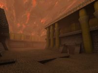 This one was just one of my map scraps, not intended for much of anything. I love the desert textures and I wanted to use them. I still think this one looks pretty great with the very dusty and suffocating orange fog and the imposingness of it, but I abandoned it after building an inside room of the tomb.