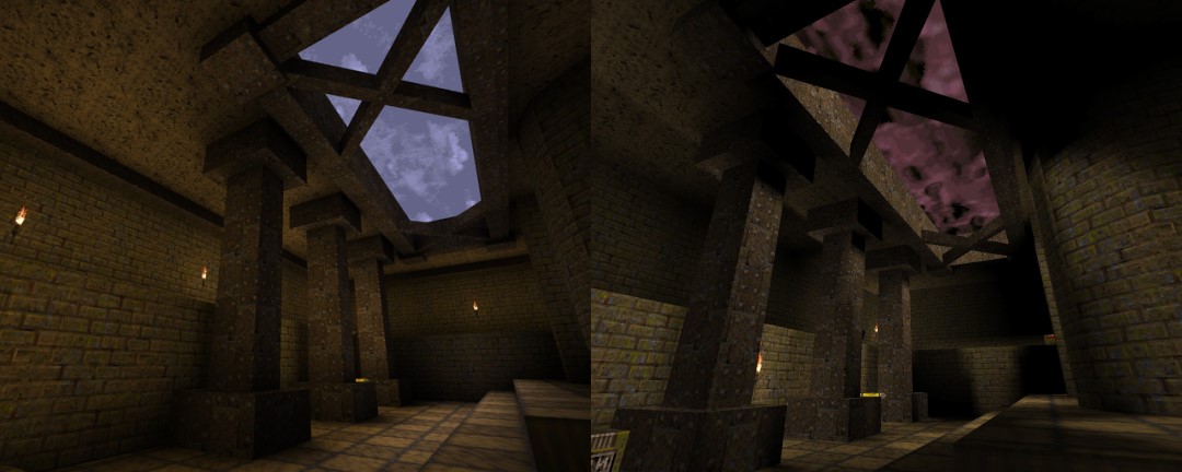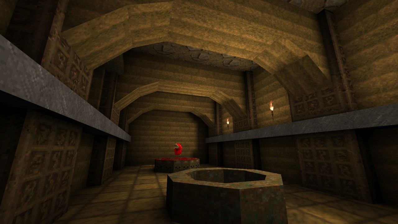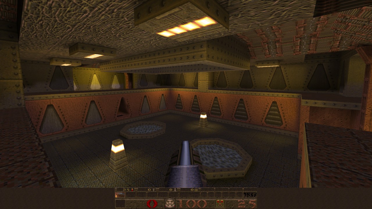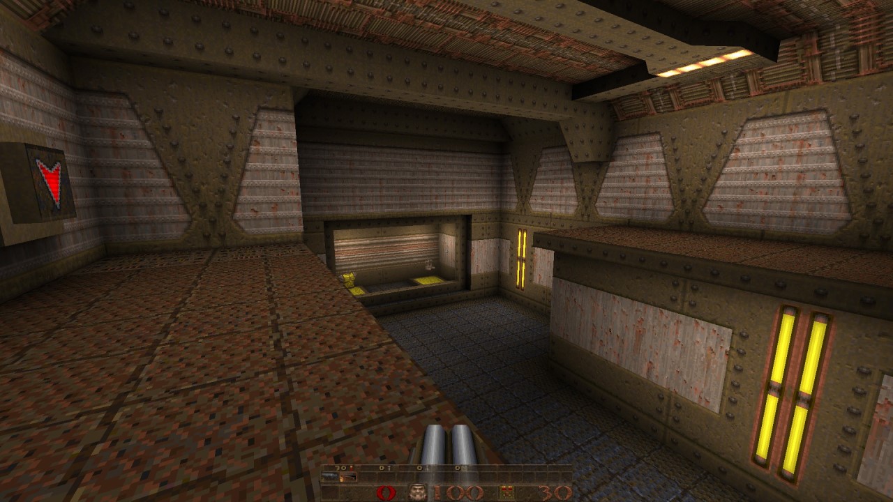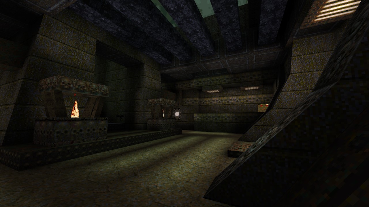 This one was a curious little detour. If you know anything about how Quake was put together, you'll know that QuakeEd was a legendarily terrible, clunky editor that Romero and friends only somehow managed to get used to. (It was also the first of its kind, in fairness.) As a result, and with polycounts that needed to stay below 400, detail and texture alignment wasn't really a focus. At the time, running the game in software at 320x200, it was barely an issue. With higher resolutions nowadays, it's a bit more noticeable.