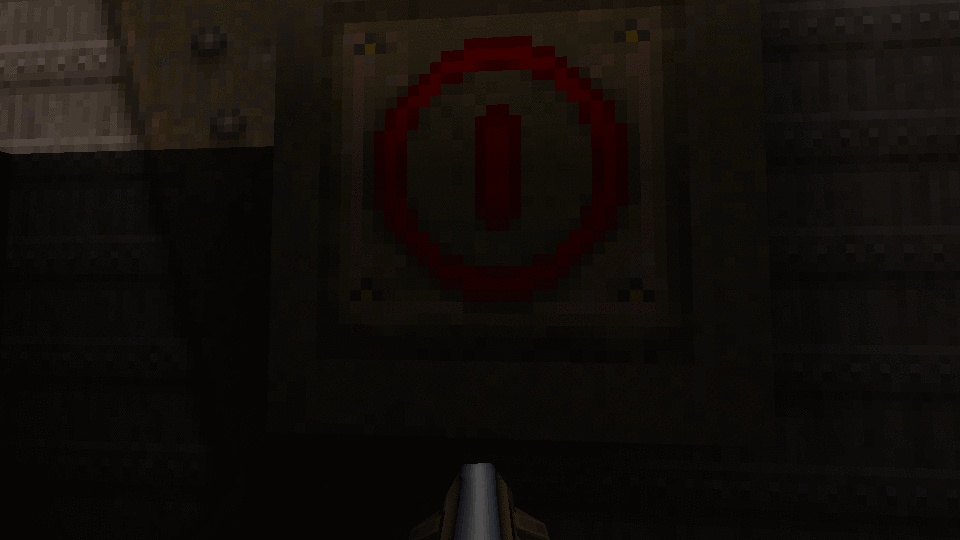 This level actually contains my first two attempts at making textures from scratch! Quake didn't have much in the way of "prop" textures by default, and I wanted some more in the way of "base" stuff. In total, I built a blinking power button (which I still think looks pretty ace, even glowing in the dark) and a security monitor, also glowing and glitchy with static to boot. Think it was based on a real Sony monitor, but I can't remember which one a Sony PVM-8045Q. (The monitor texture was actually built for MXDM1 below, for what it's worth.)