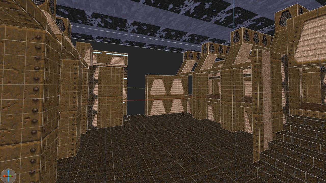This one, while neat, was also not to be. I didn't shift any of the room dimensions, and the base levels suffered from me trying to squish a lot of detailed textures into a small space, especially in the DM3