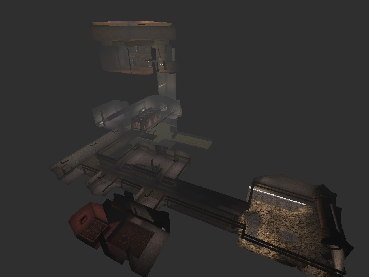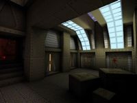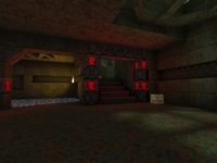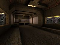 This really wasn't much of a DM level, so while I did finish it, I never released it. It was a mapping exercise, by and large. The most relevant, interesting stuff is what you see in the galleries. There was a ton of inspiration taken from DOPA's base levels, as well as Quake II's large, open, sci-fi bases (and the crates were literally cribbed from said game). Beyond that, it was kind of just a big loop with some extra hallways connecting things. Not enough heightplay for my tastes. Very pretty with the colored lighting though!