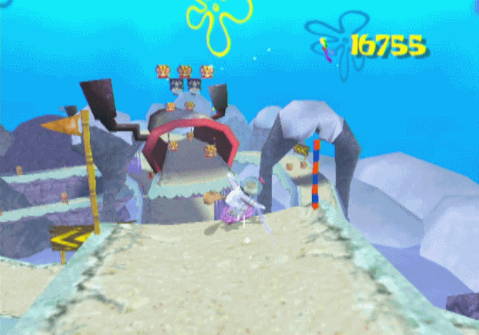 Not many old-school Nicktoons games get modern remakes, so what does that say about Battle for Bikini Bottom? Says it's pretty good! Plankton's evil scheme to mass-manufacture robots to break him into the Krusty Krab goes haywire, and now every inch of Bikini Bottom is crawling with a surprisingly imaginative array of goo bots, stun bots (kinky), fire-breathing bots, sleepy bots, Texas bots, a lot of robots, okay. It's up to SpongeBob, Patrick, and Sandy to take turns kicking ass and eventually taking on themselves in giant robot form—how meta. Bikini Bottom takes you everywhere, from the relative scenic peace of Jellyfish Fields and Goo Lagoon (go find the Atari controller sandcastle) to the eerie depths of Rock Bottom, the Mermalair, and the Flying Dutchman's graveyard, and even some slightly stranger spots in between. You ever wanted to see what Patrick dreams of? You ever wanted to race down Sand Mountain? Actually, those sliding areas are easily the most fun part of the game, whether you're taking it fast or exploring the branching slopes, it's a good-ass time. The platforming is pretty beyond reproach, and while not every stage hits (I never liked the Kelp Forest or the Mermalair, truth be told), there's more than plenty that do. SpongeBob also gains abilities over the course of the game, and they're all pretty killer. Seriously, the Bubble Bowling move is so much fun, there's a gigantic playable skii-ball machine in Goo Lagoon. How fun is that? And that's my biggest takeaway from Battle for Bikini Bottom—there's so many little side areas, changes of pace, and fun little extras to find in each level that 100%ing it is a pleasure, not a pain, no small feat for Heavy Iron Studios.