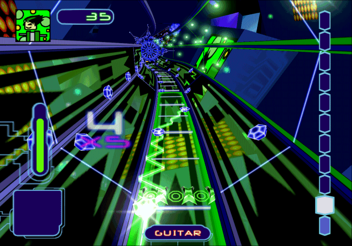 FreQuency might've given Harmonix a lot of good press, but it didn't make them millionaires. Its sequel, Amplitude, improved every single aspect of FreQuency and hasn't dated a day in 18 years...and still didn't make them millionaires. This may be the single best game in history no one bought. To date, I still staunchly shill it to everyone I know, because it deserves it. And that, my reader, means you now. Amplitude plays roughly the same as FreQuency, juggling instruments track-by-track to rebuild a song's mix, except it's now on sonic highways rather than through tunnels. Compared to FreQuency, Amplitude features a gentler difficulty curve over four difficulties, Mellow, Normal, Brutal, and Insane. The latter two are apt names—you'll be chasing good scores on them for a long while. The timing window is much relaxed, similar to the first Guitar Hero, and Amplitude is still as playable as it's ever been, especially given the absolutely fantastic soundtrack that spans everything from blink-182 to Slipknot to P!nk to David fucking Bowie. The graphics are much improved from FreQuency, featuring dizzying cityscapes and bubbling reactor cores you'll fly your Beat Blaster through, and the FreQs, formerly just icons, are now customizable 3D models that play along to the track you're on and whose bodies and heads you'll unlock as you play. You get ranked in songs by your score (1-4 bars), and there's nothing better than nailing the right path through a song and earning all four. While you can still get local multiplayer and even online going for extra fun, even solo, this game is bonkers fun. You need to play it.