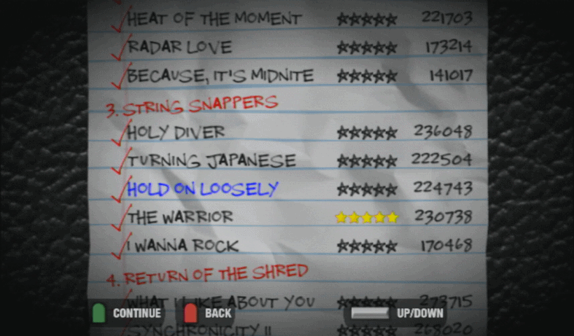 I've described Guitar Hero: Rocks the 80s before as the best Guitar Hero II custom disc ever made. I can definitely see why people felt short-changed about this at the time. This was Harmonix's contractual obligation game, and after GH2 took off, their heart was in it for Rock Band instead, which expanded plastic guitars into the whole band. 80s was produced by about the same B-team that worked on GH2 DLC for the Xbox 360 version, with a lot of the same (admittedly mostly unnoticeable) chart glitches and broken lighting events that plague that batch of songs as well (and a few similarly obscure engine bugs fixed, in fairness). Yet, even still—it's GH2 with a new batch of songs, and that's more than good enough for me. As the name implies, all thirty of these songs come from the 80s—sorta. There's two 80s 70s covers (White Lion's cover of "Radar Love" and Krokus' of "Ballroom Blitz"), and the requisite Homestar Runner joke track. You can imagine the hair is huge and heads are banging, with songs from Quiet Riot, Accept, Twisted Sister, Anthrax, and Winger, though you do get plenty of power ballads from Scandal, Eddie Money, and A Flock of Seagulls and thankfully some more oddball tracks as well (.38 Special! "Hold on Loosely"!) There's also an increase in master tracks this time, though most are still covers. I really would've liked to see more college rock in the mix, maybe some early R.E.M. or Pixies or The Replacements, but that's my 90s bias talking. It's a fine setlist. I mean, what more is there to say? The characters have all been given leopard print and neon hair extension makeovers, the venues are recolored, and aside from a few obscure bugs, 80s effectively plays the same as II. That's a really good thing, to be clear—still the best-feeling rhythm game engine I've ever played, still same great practice mode, same great co-op play, and again aside from some chart oddities (ask any Guitar Hero diehard about "Ballroom Blitz"'s bridge and they'll cough up a lung in front of you), it still plays great. At the time, I can imagine wanting more, but these days, taken as it is, 80s is still a ton of fun to breeze through.