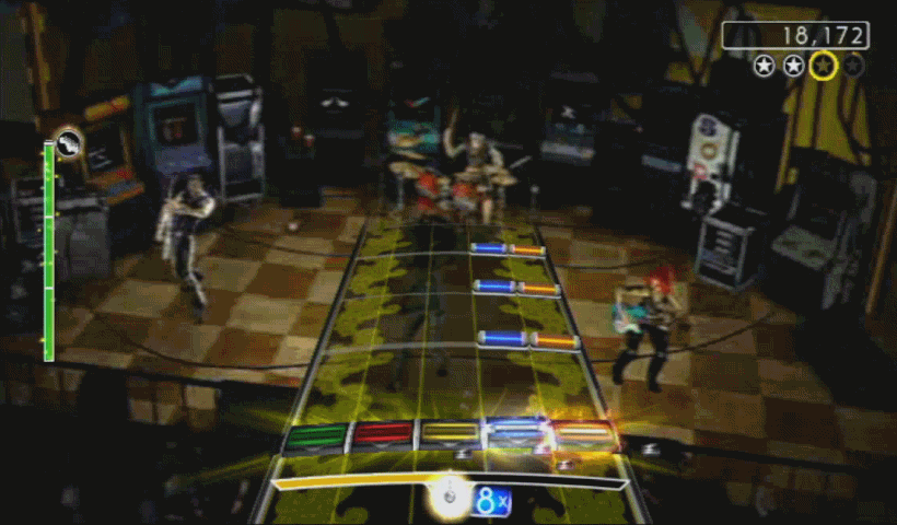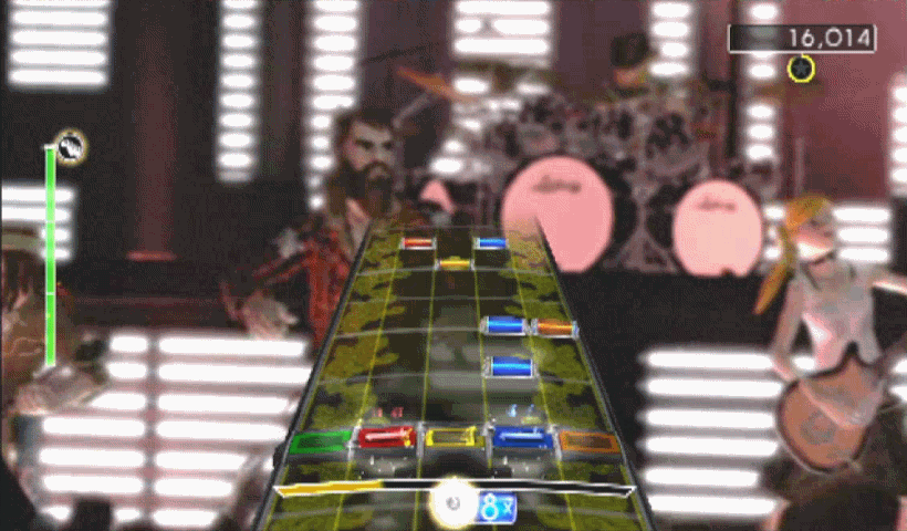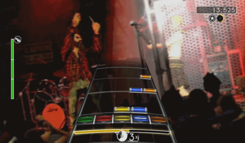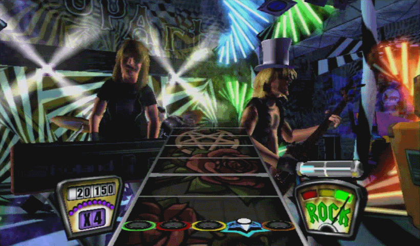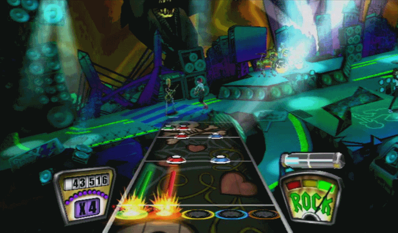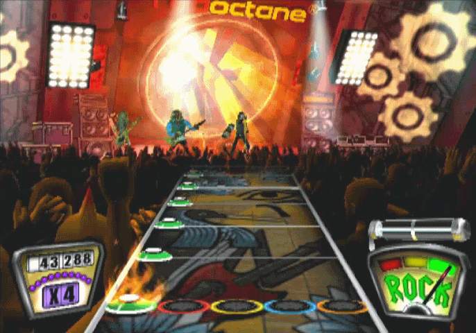Yeah, this is the good stuff. Guitar Hero II cemented itself as one of the finest rhythm games ever made, taking the already solid base of the first game, fixing all the annoyances with it and adding more songs, more things to unlock, and bass and rhythm guitar parts into the mix. Like the first game, you're the guitarist in a cover band, going from the dingiest bars to Stonehenge itself on your quest to become rock royalty. Press the fret buttons, flick the strum bar, and get good at that, because this game gets hard! Absolutely habit-forming, any trait of it, the graphics, the music, the gameplay, I could rave about all day. And I will. Fixing the many quirks and relaxing the timing window from GH1 results in a near-perfect feeling game engine that never feels unfair to play, even if it's still a lot stricter than later games. Practice Mode lets you slow down songs to as much as half speed so you can learn the ins and outs of each song, section by section, and if you're going for perfection, it's the best addition to the whole game. Each song has a second player part, either of the bass part or a second guitar, so if you happen to have a buddy along, you can smash through GH2's 64 songs (!) together as more of a band than you ever could before. For songs, GH2 leans a lot harder on the metal end of things, (Megadeth, Lamb of God, Suicidal Tendencies, All That Remains, Spinal Tap, even), though there's still tons of classic rockers (The Police, Rolling Stones, Heart) and 90s and 2000s rock favorites (Foo Fighters, Stone Temple Pilots, Butthole Surfers), so everyone's got something they'll love here. The sense of musical exploration is what I adore the most, where bands I know nothing about like The Living End or Harmonix's own bands leave the biggest impression. Seriously, this game has given me so many hours of playing, modding it, meeting people, arguing with people, and listening to its songs on buses wistfully that it's basically a part of my DNA now. This is the Guitar Hero you want. Not 3.