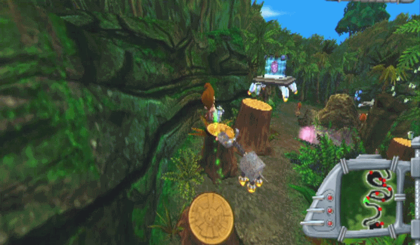 Kids, take this lesson from nostalgia: it lies to you! One of two Jimmy Neutron (a show I liked a whole lot) games I grew up with, the other being the so-bad-it's-very-good PC movie tie-in game, Jet Fusion is the one I remember less of, and now I know why. It's hard, and not for the best reasons! When an invention to project books into real life goes awry, Jimmy's favorite action movie star secret agent Jet Fusion is captured by the notorious Professor Calamitous and Jimmy's gotta go through several culturally sensitive stages to save him and collect a set of all-powerful idols before Calamitous does. Each stage (which aren't altogether very memorable, despite the potential stages based on feudal Japan, dangerous jungles, and pirate ships might have) has you build two items from scavenged parts, one to clear the stage and one to give Jimmy a new weapon. The tutorial stage in the school equips you with the main one you'll use throughout the game, the Pulse Light Ray—aka a gun. Jimmy Neutron has a gun. Game of the year. And while, yes, it is fucking hilarious to spend much of the game ventilating dudes (including the school bullies), I admittedly could not finish Jet Fusion. Most of the problem is with the controls. Jimmy is stiff and has an absurd amount of weight to him, which isn't a great trait when you have to platform everywhere! There's also a lot of instant death traps, including any water. Now imagine how a platforming bit involving floating logs and cannibals with dart guns goes. One specific jump in the volcano level saw me use up a whole continue's worth of lives and never once making it—kinda sucks! The collectibles are fun enough and there is charm here, but the most enjoyable part was for sure checking out the trailers for all the other Nickelodeon media on the disc.