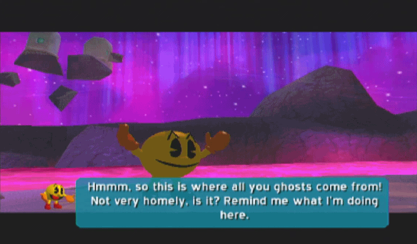 This is the only one of the cult favorite Pac-Man World trilogy to not be produced (or released) in Japan. Yeah, this was actually a Blitz Games special, Britisher developers of none other than Sneak King fame. Why do I bring up their nationality? Because I want you to expect a very...unique tone going in. If you've ever thought to yourself "hot damn, I wish Pac-Man was quippy", you're in luck! Better yet, it's somehow not a disaster! It plays pretty well, it's very short, and the quippy, bizarrely testy tone of the writing kept me and my stream chat amused as we worked through it. On Pac-Man's 25th birthday celebration, a dweeb ghost named Orson kidnap teleports Pac-Man to a variety of incredibly not-Pac locales (cliff faces with windmills, rotting cities, and even his home world of the Spectral Realm) to defeat the chocolate-hating, kitten-detesting little person Erwin. Erwin threatens the Spectral Realm with his gigantic energy siphons, and dangerous ghouls named Spectral Monsters are stirred up to the outside world by the collapse of the realm. It's up to a confused and bemused Pac-Man, always with that stupid grin on his face, to team up with his ghost adversaries (!), save the Spectral Realm, and the less-spectral one as well. All this story, and it is a pretty oddball but thankfully rather light story, justifies what's admittedly a pretty average 3D platformer with a nice Pac-Man skin. There are elements of the earlier Pac-Man World games here, notably the Pac-dot chains that send Pac-Man flying and unlockable mazes (along with pseudo-mazes worked into the level designs). Occasionally, you'll control the ghosts instead of Pac-Man, or pilot a giant fighting robot, but these are over as confusingly quickly as they come. Definitely one of the most bizarre games that's ever bore the Pac name, I heartily recommend this one to adventurous types.