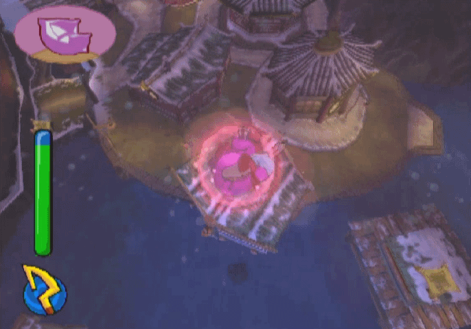 Pac-Man World 2 is one of those games I've owned forever but only just got around to beating, on stream with some friends the week I write this. Before the series took the amusingly testy tone of the third entry, they were whimsical, quick 3D platformers featuring bright locales and plenty of certain death for a nevertheless cheerful looking Pac-Man. In 2, a villain named Spooky swipes the golden fruit from Pac-Village's tree, and who else is sprung into action to retrieve them? There's also lots of arcade tokens around, and Pac-Man can return home from saving the world to play Pac-Attack with them as a lil treat. Before we get underway, I have to warn you. Whether or not you'll hate this game depends partially on what version you play. We discovered late in the campaign, after getting our asses kicked an astounding number of times for such a cutesy game, that there's actually two revisions, and I'd been playing the first one! The second revision rebalances the frankly assaholic level designs, makes touching ghosts non-fatal, slows the bosses down, and adds more checkpoints to the levels. All of these are necessary additions, as the first revision (which I still beat) is annoyingly unfair really all throughout the campaign. (Alas, regardless of revision, the camera always sucks.) Assuming you're playing the nicer version, however, what you'll find is a decently well-built, zippy (like 5-6 hours to complete) 3D platformer that takes Pac-Man through foggy forests, snowy mountains, volcanoes, and even down in a submarine for a beat. The snow portion of the game is the best, for one level and one level alone—Blade Mountain. Yes, friends, Pac-Man ice skates, and the speed is exhilarating and the level design lets you glide around with the grace of a violent swan. It's a shame only that one level comes anywhere close to memorable greatness, and the rest is just alright. Cute. Often frustrating. I'd recommend 3 over it.