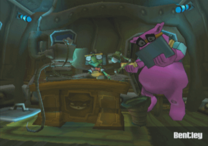 What do you do when you've already pulled off some master thievery? Go bigger! Sly 2: Band of Thieves is frankly the best of the trilogy, and that's a commonly held opinion, and it's not hard to see why. Sucker Punch cast off a lot of the "gamey" aspects that they were holding onto with the first game, the limited number of lives and the ultra-linear platformer levels, brought Murray and Bentley into the playable mix with their own unique playstyles. Add to that some seriously memorable hub worlds and music that'll get you in the master thief mood any day, and yeah, it's damn near perfect. Having defeated the big bird that killed his father, Sly and the gang break into a museum in Cairo to steal the soulless, immortal machinery that Clockwerk had been replacing his body parts with in hopes of destroying them for good—only to discover the Klaww Gang has already stolen the parts! You now jet across the world, from France to India to Prague to Canada, to pull off large-scale heists against another batch of colorful criminals to steal Clockwerk back piecemeal. You go on stakeouts, you steal keys from guards, you interrogate generals, play Robotron to hack computers, trade shots with realass military tanks—all pretty standard thief stuff. The writing is much improved and matured (though still very family-friendly) from the first game. Murray goes from a hapless dope to a badass raging hippo who can and will beat the everloving fuck out of a tiger spice lord, and Bentley, still cowardly, make things go boom with his genius array of gadgets. Each of the hub worlds are hugely memorable (if a little confusingly laid out sometimes), especially as you tear through the streets of Paris, pickpocketing patrolling mooks and stealing priceless works of art. A very fun adventure with tons of replayability, Sly 2 is a high watermark of PS2 platforming. Show your bling and let it shine you.